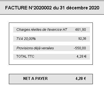 Cette facture est fonction des dépenses réellement payé par la SCI lors de l'exercice écoulé.
