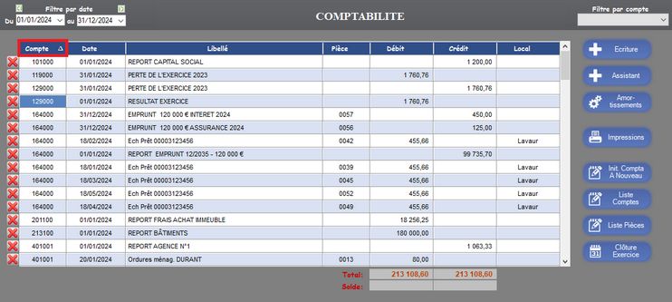 + Position constante dans les tableaux BANQUE/COMPTA après l’ajout d’une nouvelle écriture.