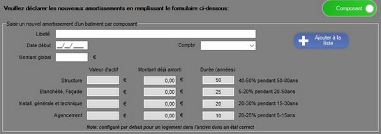 + Amortissement des biens immobiliers par composantes.