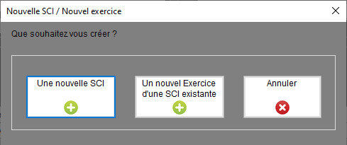 Cliquez sur le bouton puis remplissez le formulaire suivant avec le nom de votre SCI (Ce nom sera seulement utilisé en haut de la fenêtre principale du logiciel).