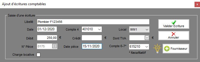 Cliquer ensuite sur le bouton pour créer l'écriture comptable associée.