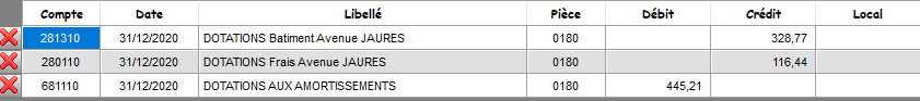 Les écritures d'amortissement suivantes seront alors passées dans la compta: