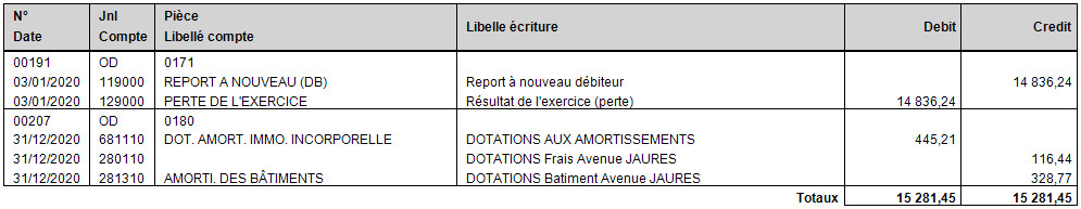 On obtient alors le tableau suivant, avec les montants qui seront amorti durant l'exercice et le cumul amorti qui sera porté sur le prochain exercice: