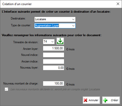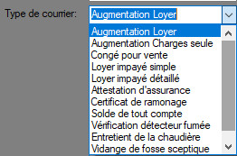 Il vous faut séléctionner le nom du locataire et le type de courrier. Personalisez ensuite le courrier dans l'interface qui apparait.