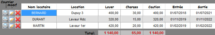 Si vous souhaitez supprimer un locataire de votre liste, veuillez cliquer sur la croix rouge, en début de ligne