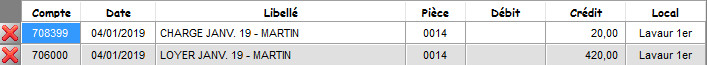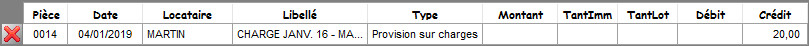 Si vous souhaitez supprimer un appel de loyer de votre liste, veuillez cliquer sur la croix rouge, en début de ligne