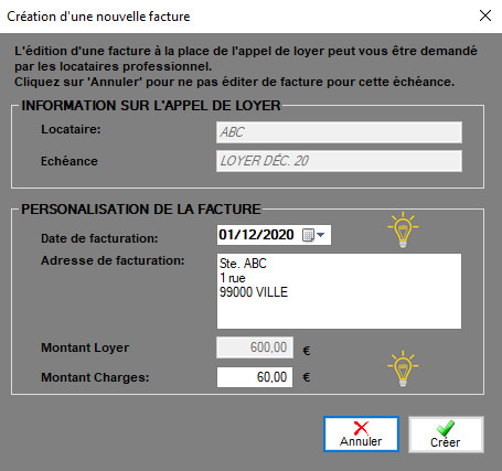 Il vous sera alors proposé lors de l'impression de l'appel de loyer , de créer une facture pour l'échéance de loyer en remplacement de l'imprimé d'appel de loyer classique.