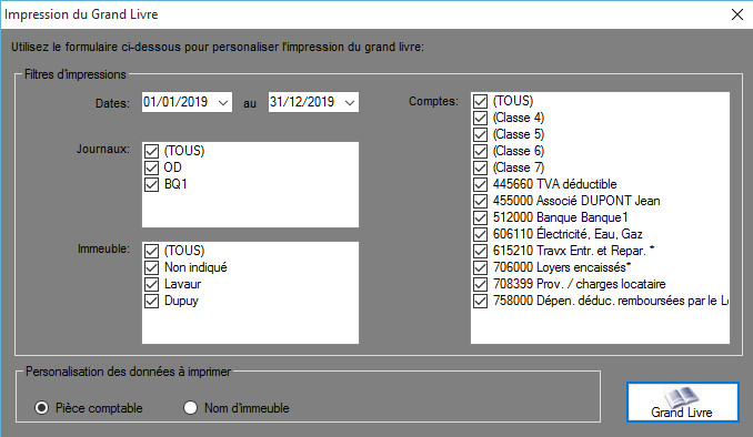 Le grand livre est un document comptable rappelant l'ensemble des écritures de l'exercice. Il doit être imprimé en fin d'année, une fois toutes les écritures passées et l'exercice clôturé.