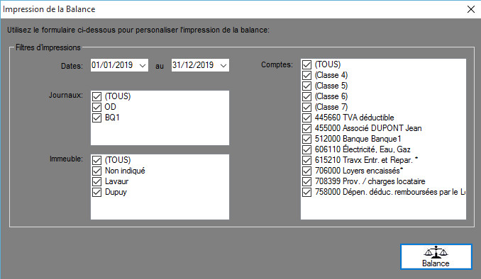 Vous pouvez ainsi personnaliser les données que vous souhaitez voir apparaître dans votre balance, en utilisant les cases à cocher.