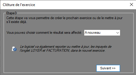 Cette partie concerne la création ou la mise à jour du prochain exercice en y important les informations de l'exercice que vous être en train de clôturer.