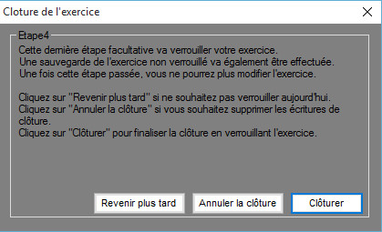 Cette partie concerne le verrouillage de l'exercice. Cette étape n'a rien d'obligatoire. Le choix vous appartient, cependant veuillez noter que toutes clôture est strictement définitives.