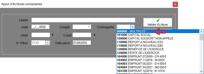 3. Ajout d'écriture comptable multiples comptes sans mouvement bancaire
