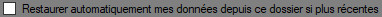 - si vous souhaitez qu'une restauration automatique soit faite, au moment d'ouvrir un exercice, si des données plus récentes sont disponibles sur l'espace de stockage. Cette case ne doit pas être cochée pour un utilisateur lambda.