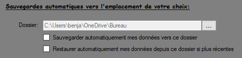 1. Sauvegarde et restauration automatique via un emplacement choisi par l'utilisateur