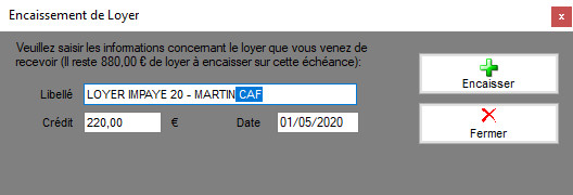 En cochant cette case, vous pourrez faire apparaître sur les quittances le détails des paiements reçus des locataires. Pour cela il vous faudra lors des encaissements de loyers, ajouter un libellé comme dans l'exemple suivant.