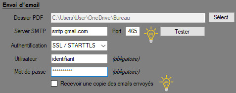 Note2: L'envoi via les serveurs SMTP de GMAIL n'est pas supporté.